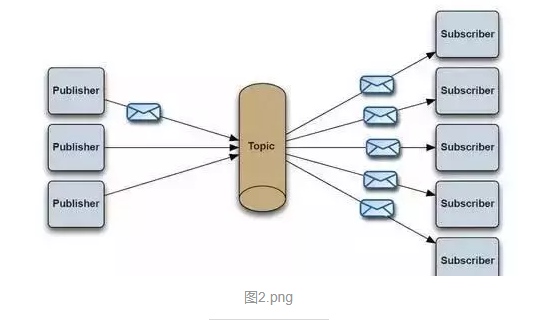 - 另一种称为Pub/Sub(Publish/Subscribe,即发布-订阅)模型,发布-订阅模型定义了如何向一个内容节点发布和订阅消息,这个内容节点称为topic(主题)。主题可以认为是消息传递的中介,消息发布这将消息发布到某个主题,而消息订阅者则从主题订阅消息。主题使得消息的订阅者与消息的发布者互相保持独立,不需要进行接触即可保证消息的传递,发布-订阅模型在消息的一对多广播时采用。