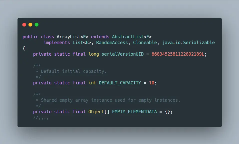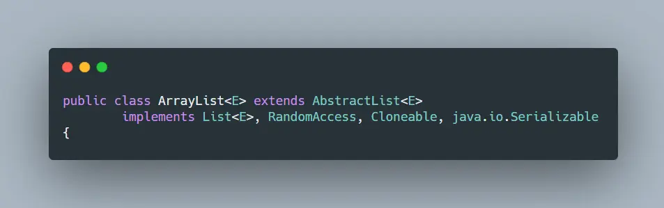前面的图中我们可以看到ArrayList 继承了三个接口,后面两个都是比较熟悉的,分别是标识对象可复制和可序列化。
