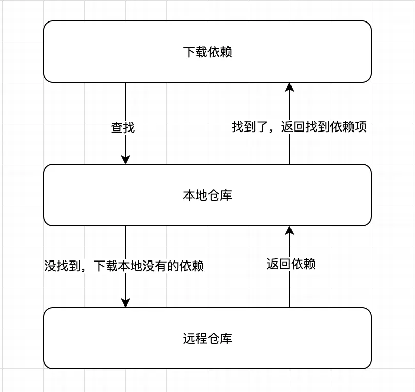 - 下载依赖时,首先检查本地仓库,如果本地仓库中没有,就去远程仓库下载并缓存到本地仓库中。