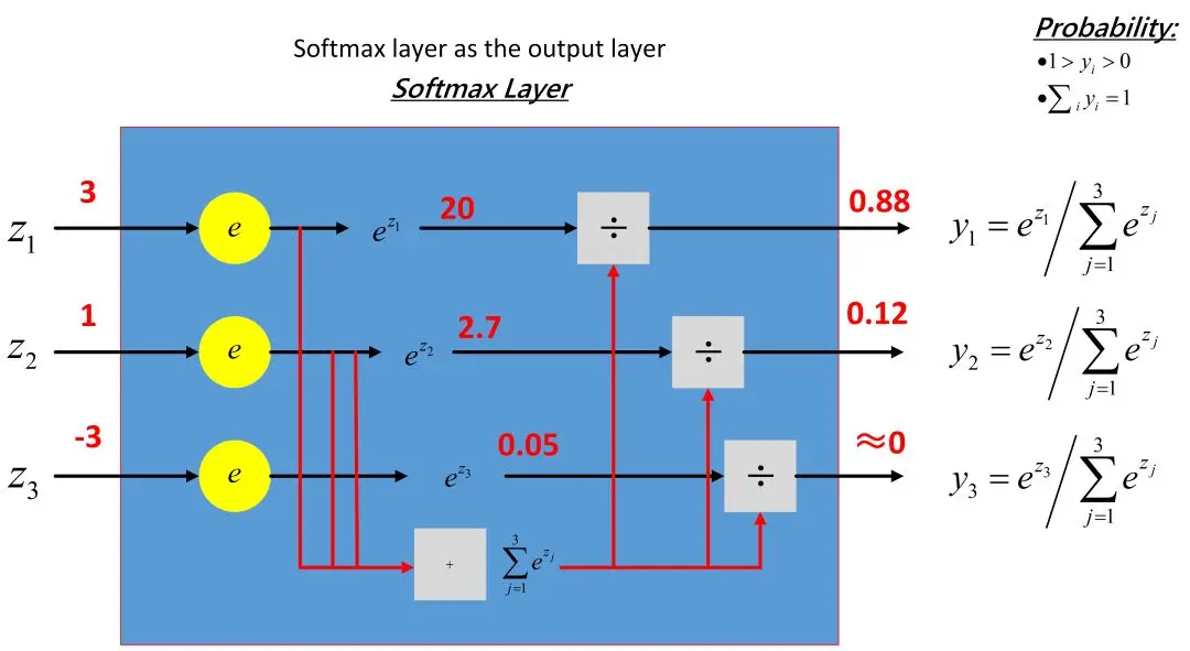 下图包含了 Softmax 层的详细过程和推导: