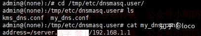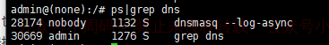 然后,我的路由器使用的固件支持使用ssh连上去操作,而路由器本身也是有DNS服务器功能的,所以我尝试了一下直接利用这个DNS服务器来搞事情,这里我直接用ps|grep dns命令就找到了一个Dnsmasq的服务。