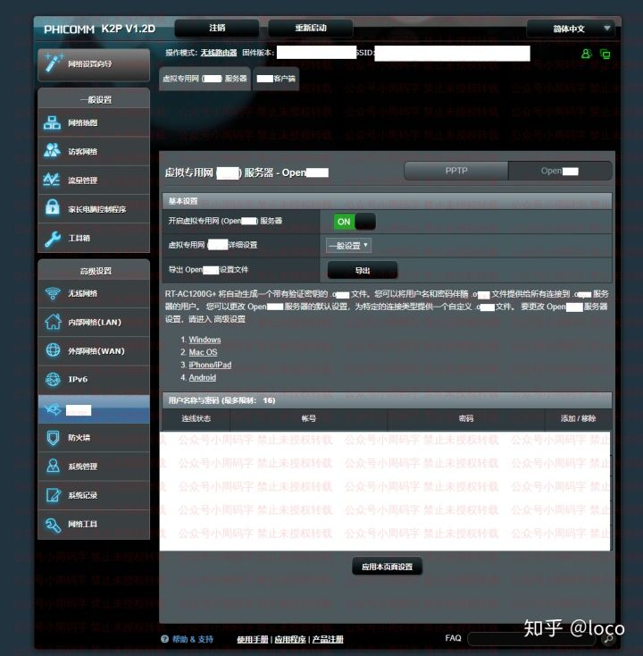 因为估计很多人都不会搭【虚拟专用网】的关系,这里还是讲一下怎么搭吧。我这边使用的是【Open虚拟专用网】,服务端可以搭在服务器上,也可以搭在路由器上,由于我的路由器可以直接创建【虚拟专用网】服务,这里就直接把【虚拟专用网】的服务端搭在路由器上了,如果你路由器没有这种功能,可以参考一下网上的教程然后搭在服务器上。