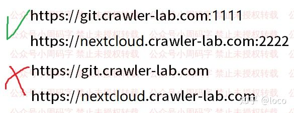 另外你还在你的NAS上搭了一个别的带Web端的服务,或者是你那本来就是个全功能的服务器,上面搭了什么Gitlab、NextCloud之类的各种服务。然后基于上面的情况,你想要在外网环境下访问这些不同的Web服务,就需要指定两个不同的端口,而且还得记着哪个端口号是哪个,因为你就算绑了子域名,也无法做到像https://git.crawler-lab.com这样访问,你的域名后面还是得加个指定的端口号,是不是发现更麻烦了?