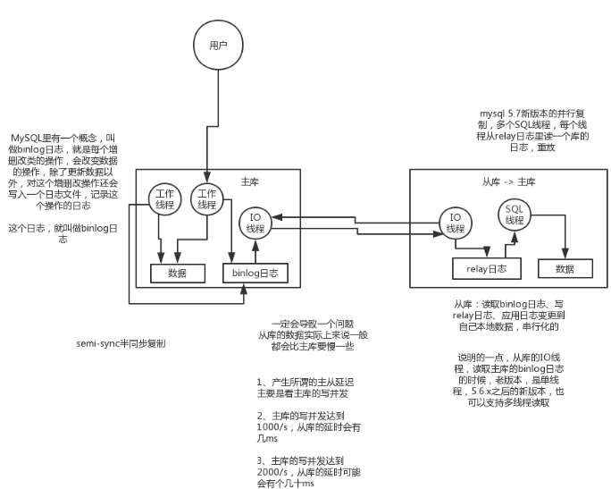 由于从库从主库拷贝日志以及串行执行SQL的特点,在高并发场景下是有延时的,从库数据一定会比主库慢一些,所以经常出现,刚写入主库的数据可能是读不到的,要过几十甚至几百ms才能读到