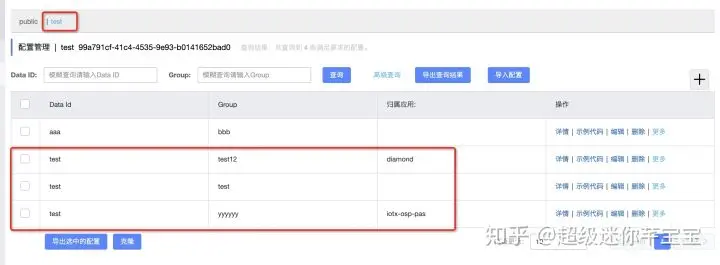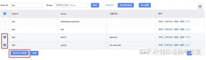 4、 配置同步,选取想要同步的配置,点击“克隆”,然后再选择要同步的目标命名空间,就可以将配置同步到对应的命名空间: