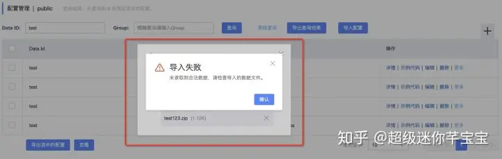 同时如果导入的配置文件格式不符合要求,也会有相应的提示: