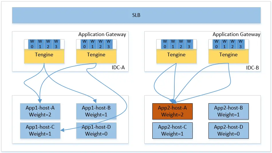 在阿里七层流量入口接入层(Application Gateway)场景下, Nginx 官方的Smooth Weighted Round-Robin( SWRR )负载均衡算法已经无法再完美施展它的技能。 Tengine 通过实现新的负载均衡算法Virtual Node Smooth Weighted Round-Robin(VNSWRR )不仅优雅的解决了 SWRR 算法的缺陷,而且QPS处理能力相对于 Nginx 官方的 SWRR 算法提升了60%左右。