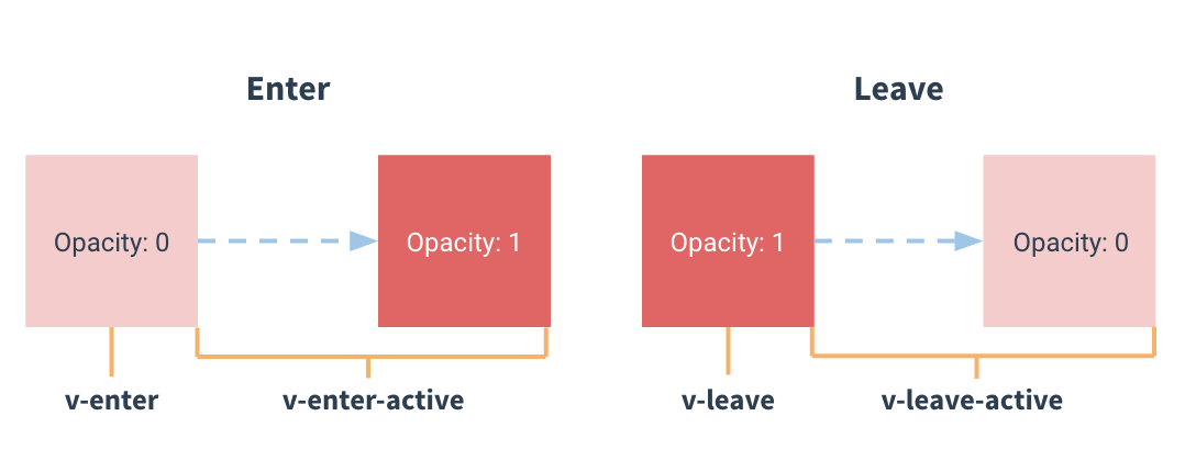 会有 4 个(CSS)类名在 enter/leave 的过渡中切换: