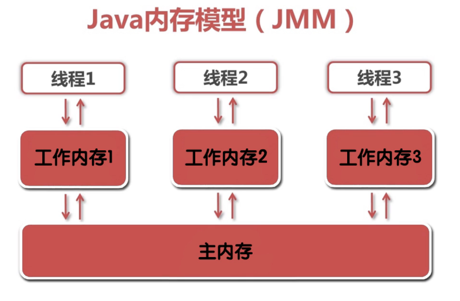 java内存模型,描述了java程序中各种变量(线程共享变量)的访问规则。以及在jvm中将变量存储到内存中读取出变量这样的底层细节。