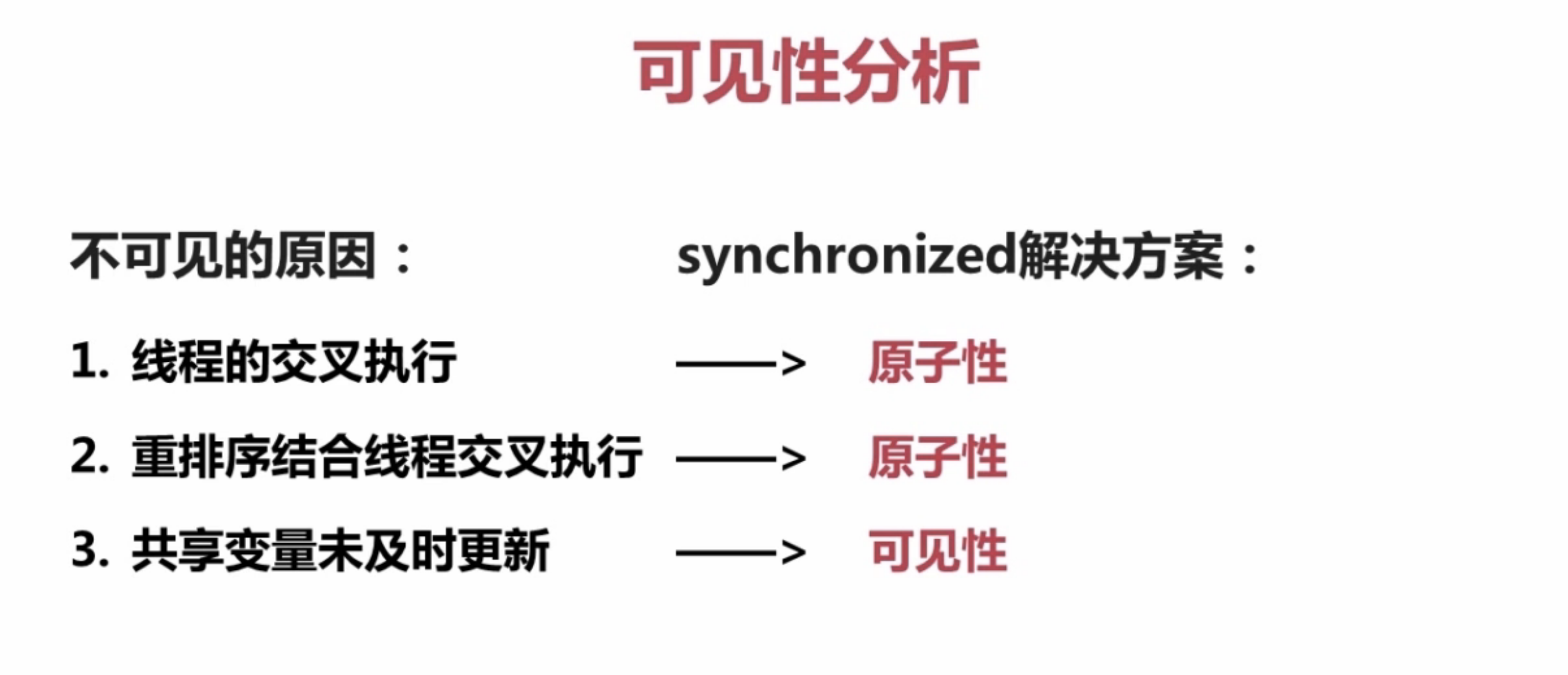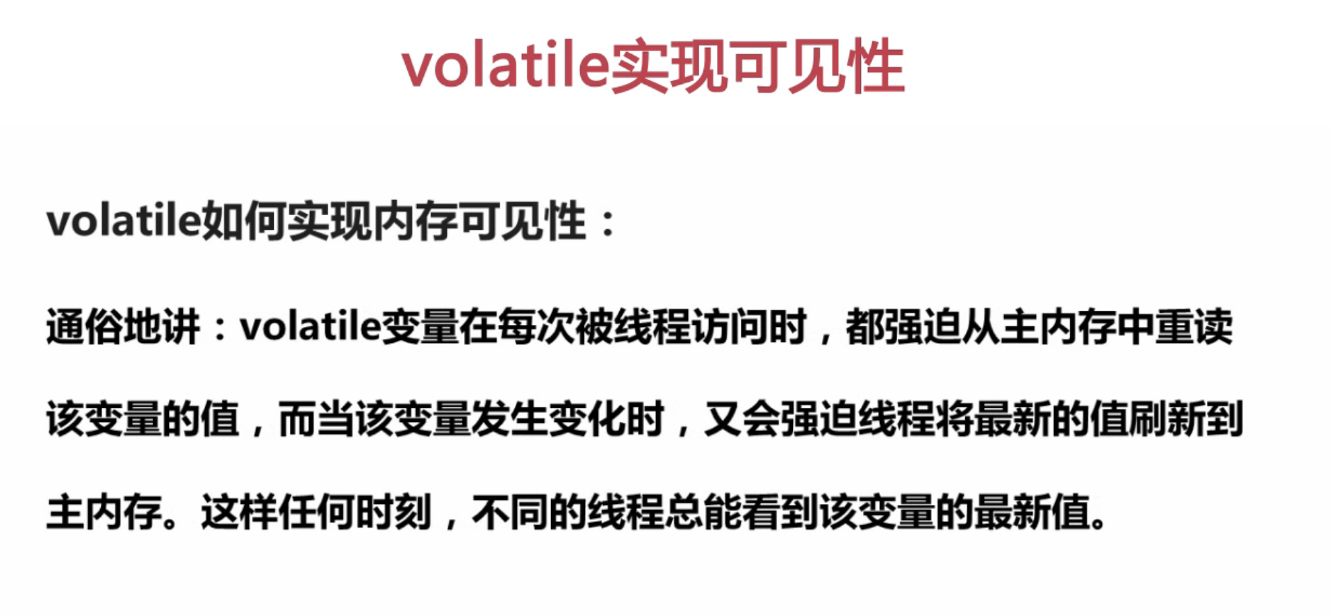 - 线程加锁时,将清空工作内存中共享变量的值从而使用从主内存中最新copy的最新副本数据。(特别注意:加锁和解锁必须是同一把锁)