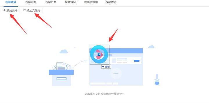 2、确认选择了“视频转换”功能后把优酷下载的视频视频添加到软件,添加的时候可以点击软件左上角的“添加文件”/“添加文件夹”按钮或者直接把视频拖拽到软件中。小编在优酷下载了三集<天行九歌>作为本次案例进行演示。