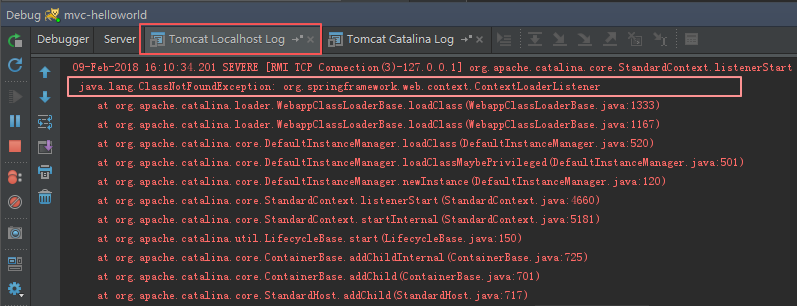 啥情况?当然要看日志。。。点开下面的“Tomcat Localhost Log”,可以看到问题出在哪里。。。