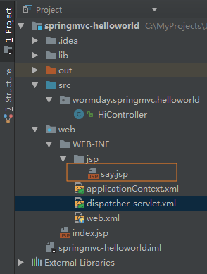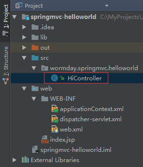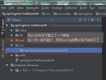 我建的包名称为:wormday.springmvc.helloworld