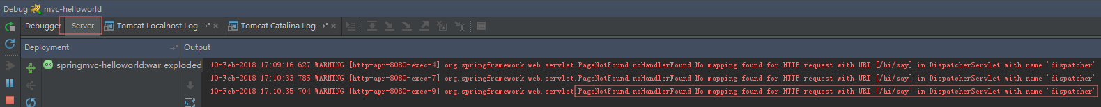 org.springframework.web.servlet.PageNotFound.noHandlerFound No mapping found for HTTP request with URI [/hi/say] in DispatcherServlet with name 'dispatcher'