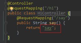 也可以只把注解写在方法上,比如@RequestMapping("/hi/say”)