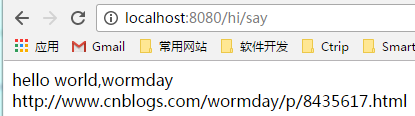 如果你现在重新启动程序,然后继续访问http://localhost:8080/hi/say