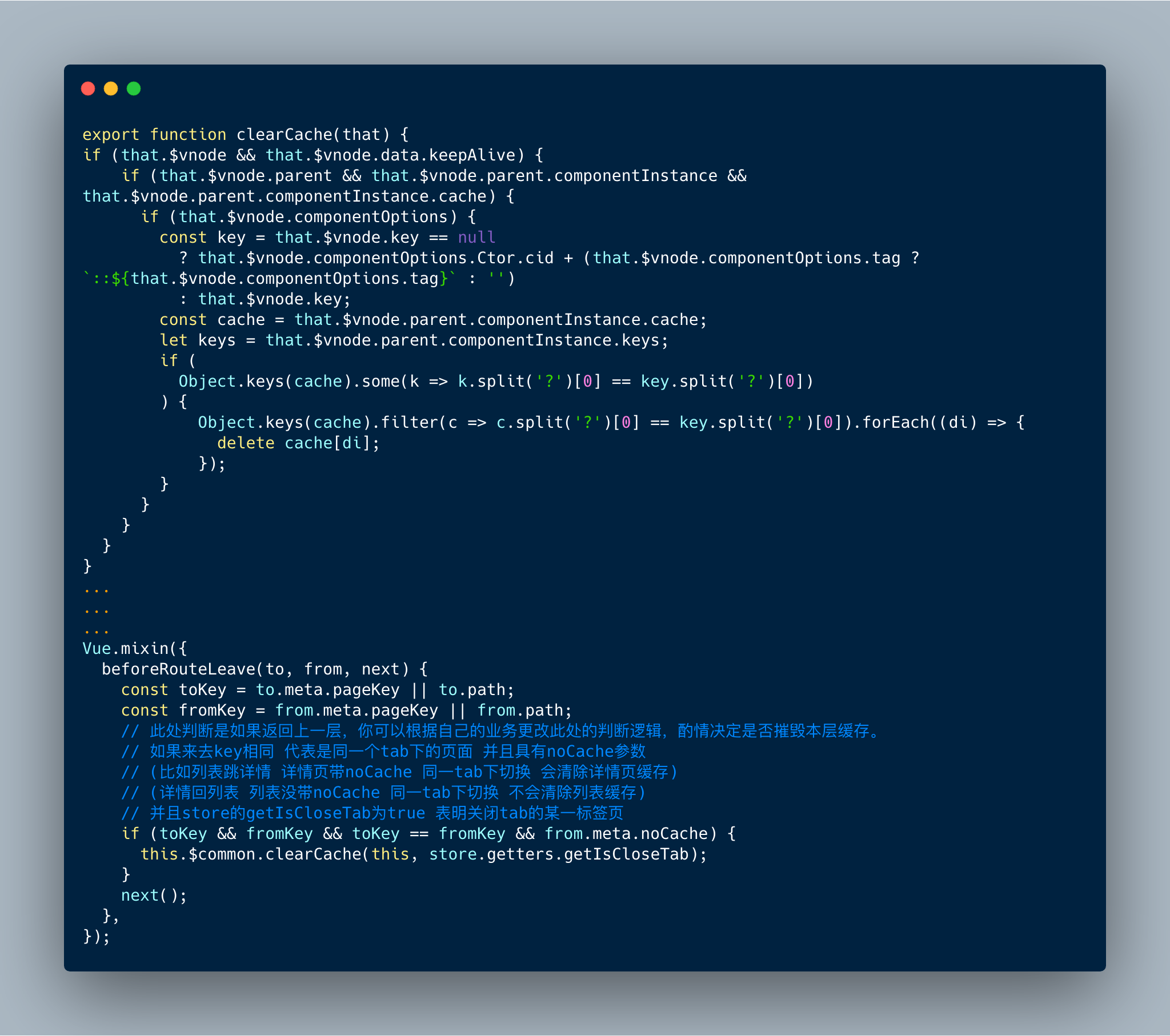 中,我们想到了一个用vue路由钩子清理缓存的一个方法。