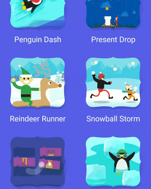 我们的首要工作是将其解耦和,并在游戏模块之间建立足够清晰的边界。我们小心翼翼地分离了全部的游戏模块,通过使用新的 com.android.dynamic-feature Gradle 插件,现在每个游戏都是完全独立的模块了。对于那些有着相同依赖的游戏(比如 ‘Penguin Swim’ 和 ‘Elf Jetpack’ 共享了许多代码),依赖被添加到 ‘base’ 模块中,这样一来,就可以只安装一次(同时玩两个游戏)了。