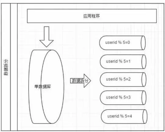 如图,切分原则都是根据业务找到适合的切分规则分散到不同的库,下面用用户 ID 求模举