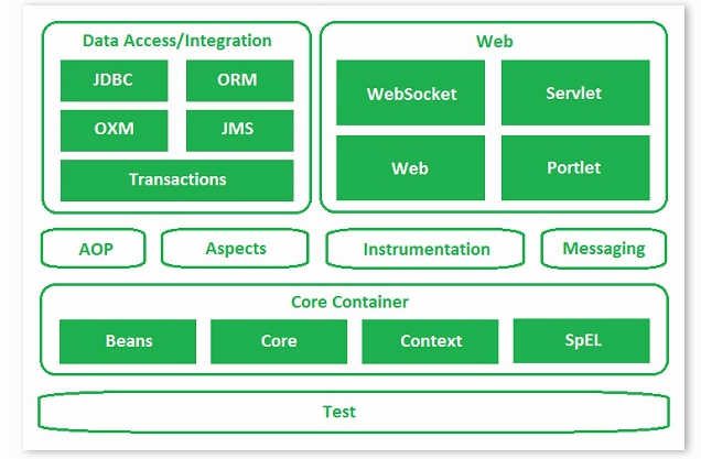 spring是一款开源的轻量级框架,开源说明公开源代码,轻量级说明依赖比较少,相比于框架EJB。框架结构如下: