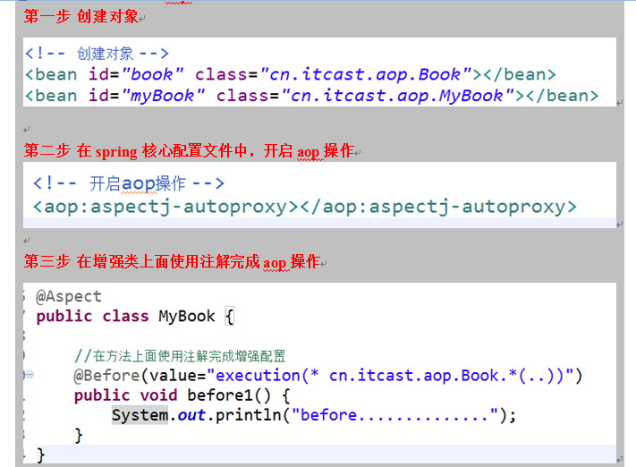<aop:before method="before" pointcut-ref="cut1"/>