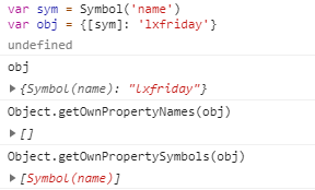 当一个 symbol 类型的值在属性赋值语句中被用作标识符,该属性(像这个 symbol 一样)是匿名的;并且是不可枚举的。因为这个属性是不可枚举的,它不会在循环结构 “for( ... in ...)” 中作为成员出现,也因为这个属性是匿名的,它同样不会出现在 “Object.getOwnPropertyNames()” 的返回数组里。这个属性可以通过创建时的原始 symbol 值访问到,或者通过遍历 “Object.getOwnPropertySymbols()” 返回的数组。