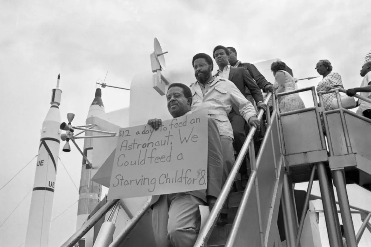 拉尔夫·大卫·阿伯纳西(Ralph David Abernathy)和何西娅·威廉姆斯(Hosea Williams)在发射现场带领“穷人运动”(Poor People’s Campaign)的成员游行。 -