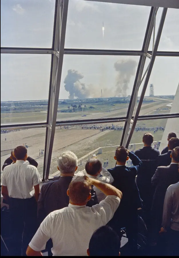 14、工作人员在距发射台3.5英里的发射控制中心观看发射