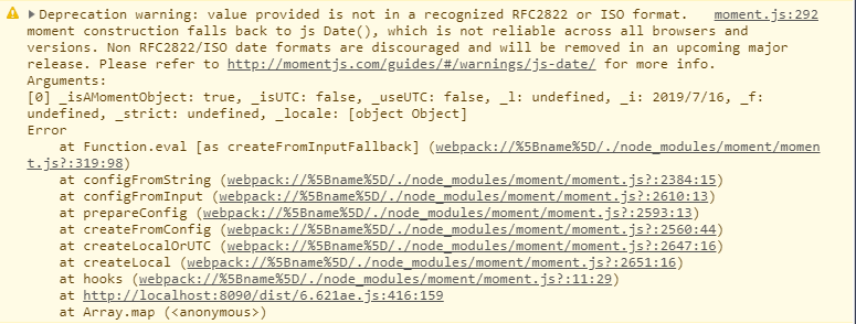 moment.suppressDeprecationWarnings = true;//避免不规范的时间集进行format发出警告4.在加上上面的代码就不会爆出警告,如果在日期中默认选中当前的默认年份的时候,可以在双向绑定中初始值给定当前年份---获取当前年份(new Date().toLocaleDateString())