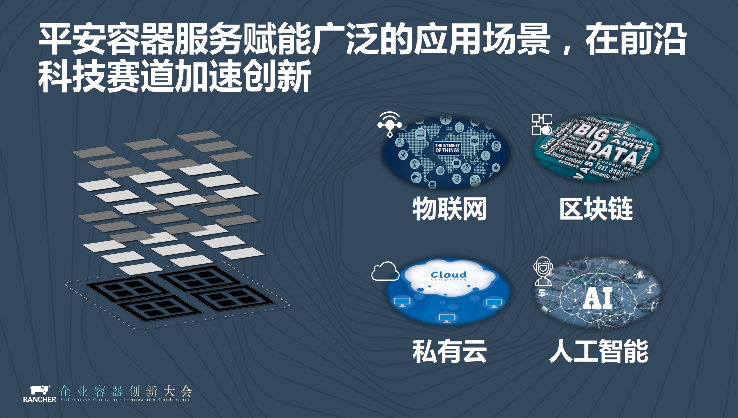 我们在区块链上尤其是平安的壹账链上做得挺不错的,在部署的过程中,我们也是基于容器实现的。人工智能识别中我们很多的服务也是可以通过容器的方式来做。私有云也是一样的,为了更好地降低耦合度,加快应用部署。我们也相信越来越多的私有云场景里有容器相关的技术。