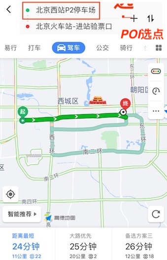 从高德地图App可以看到,用户进行路线规划时选择起点的方式有以下三种: