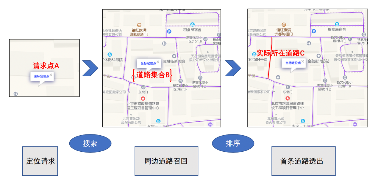 而自动定位起点的方式,由于受GPS、基站、网络定位精度影响,定位坐标易发生漂移,定位设备抓取的位置与用户实际所处道路可能相差几米、几十米甚至几百米。如何在有限信息下,将用户准确定位到真实所在道路,就是我们所要解决的主要问题。