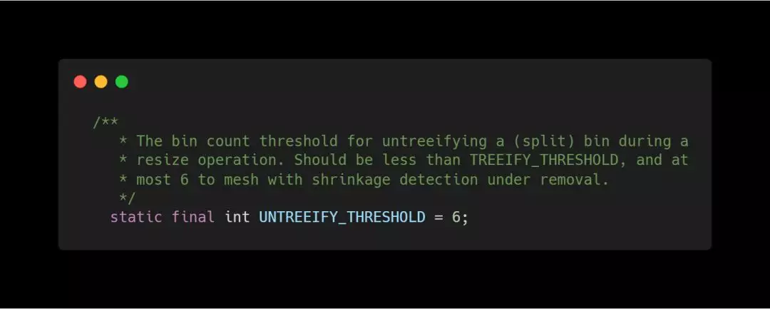 当链表的值小于6则会从红黑树转回链表