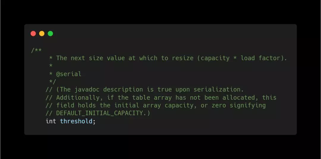 用来调整大小下一个容量的值计算方式为(容量*负载因子)