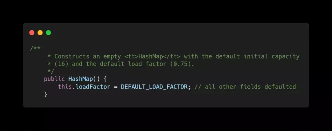 构造一个空的 HashMap ,默认初始容量(16)和默认负载因子(0.75)。