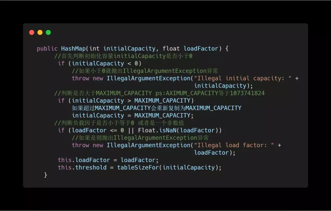 构造一个空的 HashMap具有指定的初始容量和负载因子。我们来分析一下。