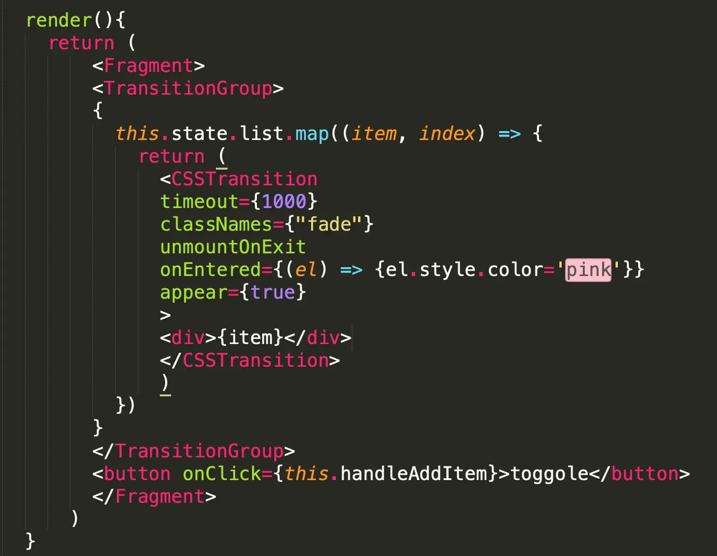 - unmountOnExit: 出场时删除对应DOM元素