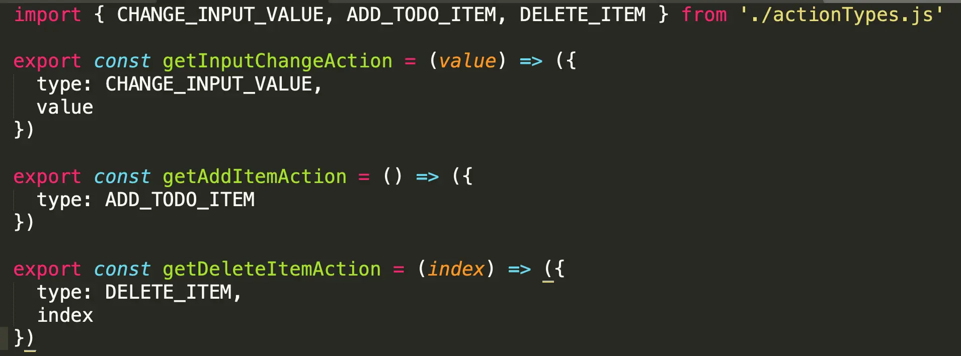 - 可以创建一个actionCreate.js文件,存放所有action,在组件里直接调用即可