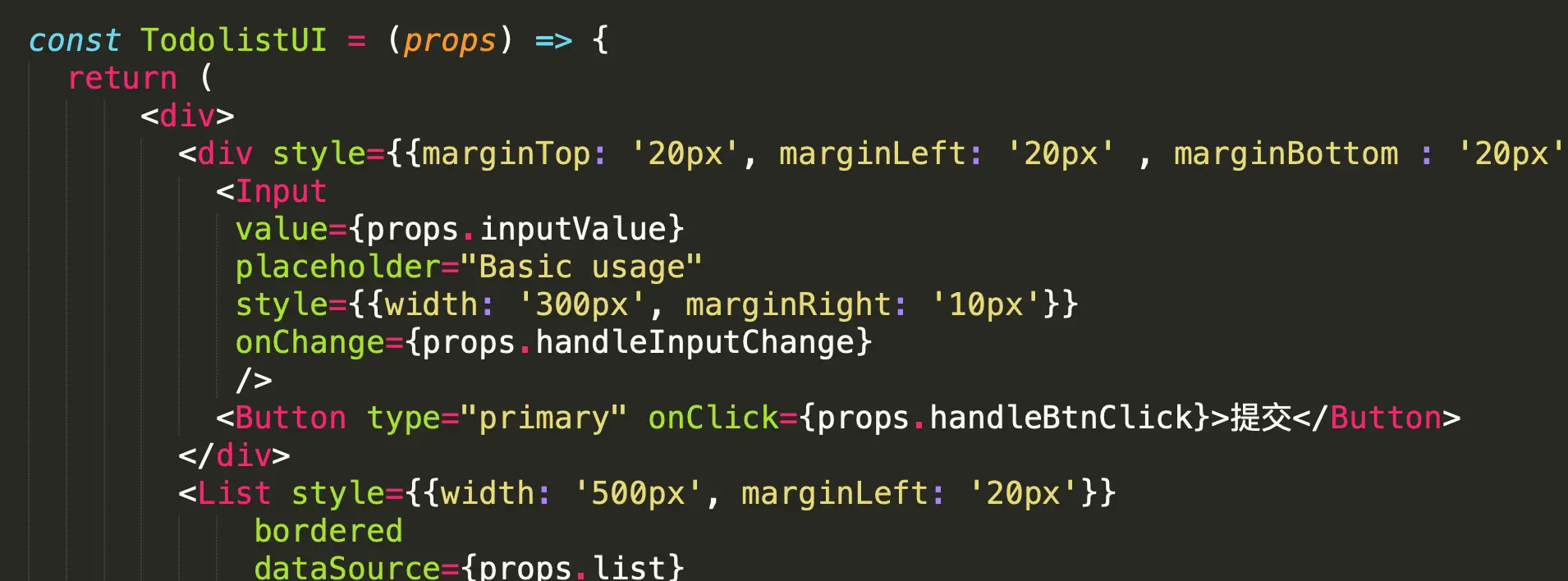 - 无状态组件:如果一个组件只有render函数,可以将其写成无状态组件。无状态组件是一个函数,性能比普通组件高。