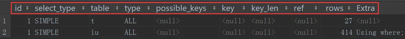 EXPLAIN Output Columns EXPLAIN解释计划输出结果的表头,即上图红色款内内容。