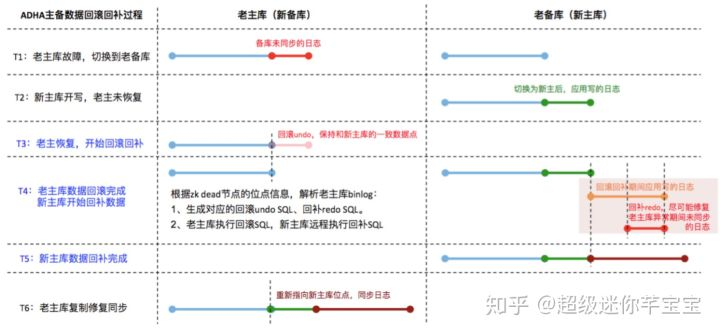 ADHA(Alibaba Database High Availability)是阿里巴巴集团数据库高可用体系。ADHA的回滚回补功能帮助我们在发生切换过程中尽量保证数据质量,将老主库还没传到老备库的数据回滚掉rollback,将回滚掉的数据回补到新主库中replay。