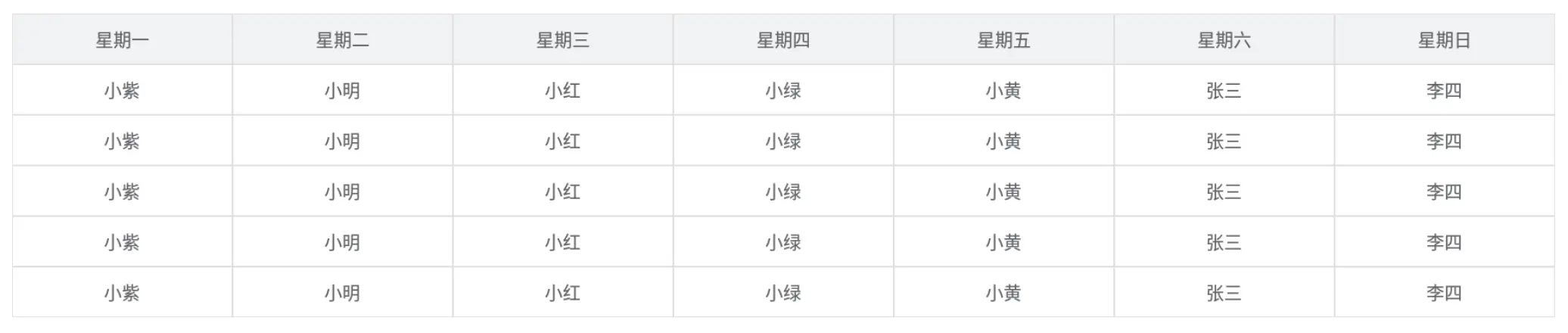 - 表头设置灰色背景,单元格是白色背景