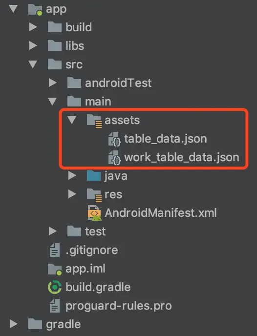 src/main/assets,跟java和res平级。 - 在 assets 目录下新建并编写 json 文件