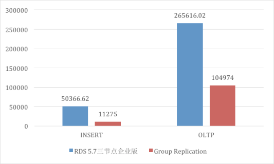 Group Replication 为了保证能够多点写入,会传递WriteSet的信息,其他节点收到WriteSet后需要进行合法性验证,确保正确处理冲突事务。在测试中,我们发现为了支持多点写入而做合法性验证是一个非常明显的性能瓶颈点,除此之外,Group Replication还是着重解决局域网或者是同城下一致性问题,长传链路下基本没有做任何优化。我们在跨城场景下,使用官方5.7.17与RDS 5.7三节点企业版做了对比测试,GR的性能劣势非常明显,纯写入的性能只有RDS 5.7三节点企业版的五分之一,OLTP的性能也不足RDS 5.7三节点企业版的40%。