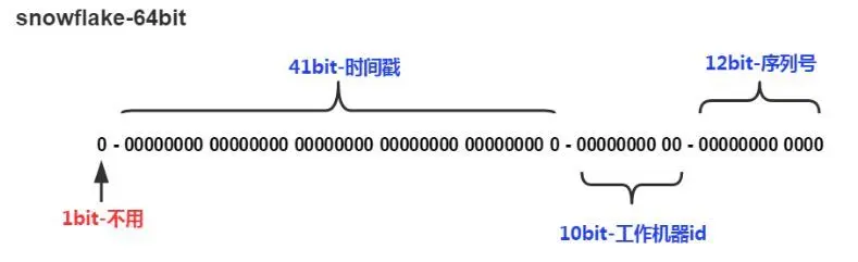SnowFlake生成的ID一共占位64bit,其结构图如下: