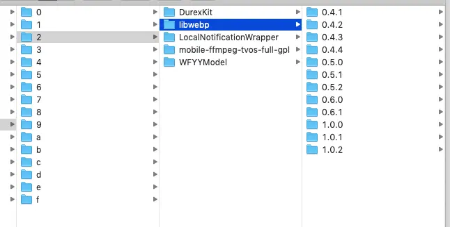 拿到上面的路径,前往文件夹(command+shift+G)~/.cocoapods/repos/master/Specs/1/9/2/libwebp