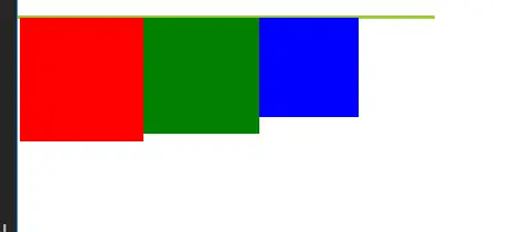 - 在一个父元素内部,如果一个元素浮动了,那么它就脱离了标准文档流,后面的元素就会往上排。例如:
