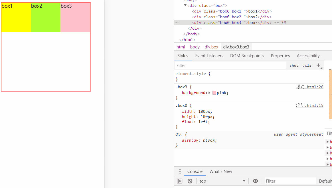 16.一个元素浮动了,那么它也是受父元素的控制。当父元素宽度变小时,装不下所有的子元素时,后面的子元素有贴靠性。当父元素小到极限时,里面的浮动的子元素宽度是不会改变的。
