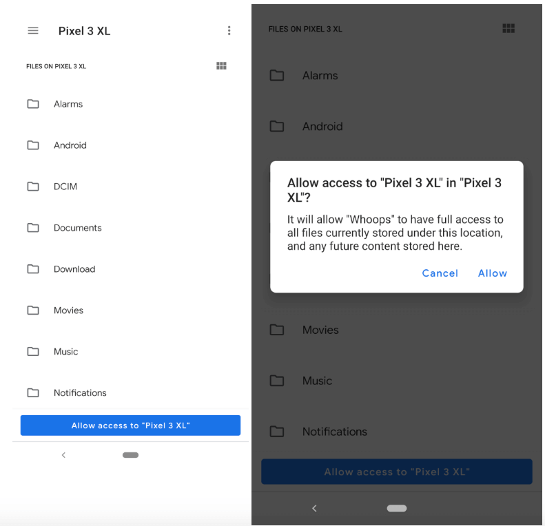 问题分析 2:在 Android Q 上,修改公共目录文件,需要用户授权。