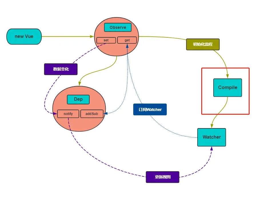 + new Compile(this.$options.el, this)
